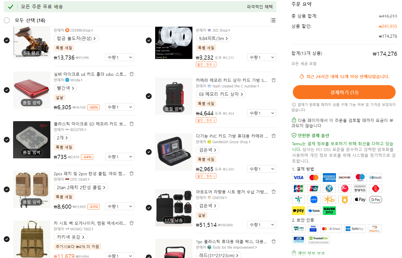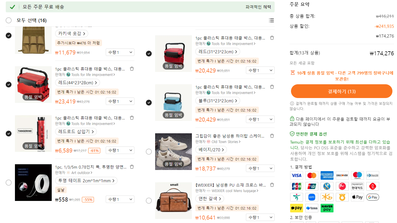 그리고 최종적으로 선택한 물건들을 결재했습니다. 조만간 오겠지요? 오면 다시 temu 후기를 써 보도록 하겠습니다.